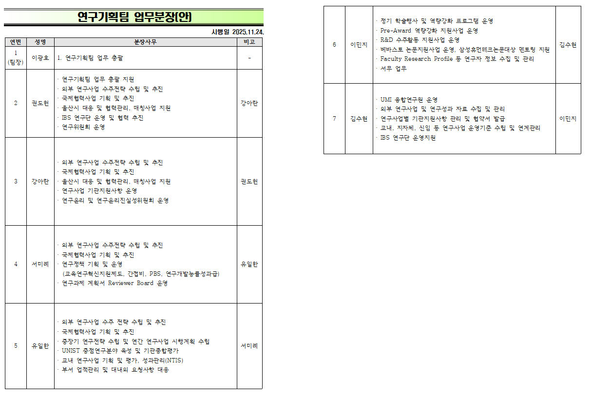 home 자료마당 공지사항 일반공지 일반공지 print 연구기획팀 업무분장 안내(2025.11.24. 시행) Nov 24. 2025 34조회 Download -업무분장안_배포용.hwp 2025년 11월 24일자로 변경된 연구기획팀의 업무분장사항을 공유하오니, 업무에 참고하시기 바랍니다. prev 해양수산부 주최 제14회 북극항로 국제세미나 안내 next 글이 없습니다. 목 록