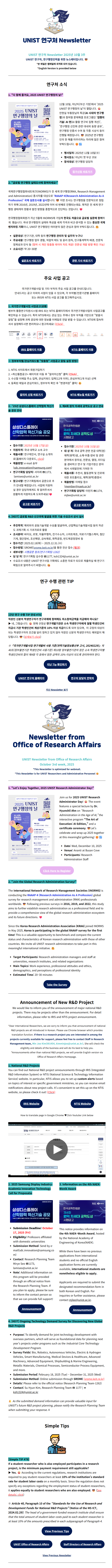 home 자료마당 공지사항 뉴스레터 뉴스레터 print 2025년 10월 3주 UNIST 연구처 Newsletter Oct 17. 2025 8조회 prev 2025년 9월 4주 UNIST 연구처 Newsletter next 글이 없습니다. 목 록
