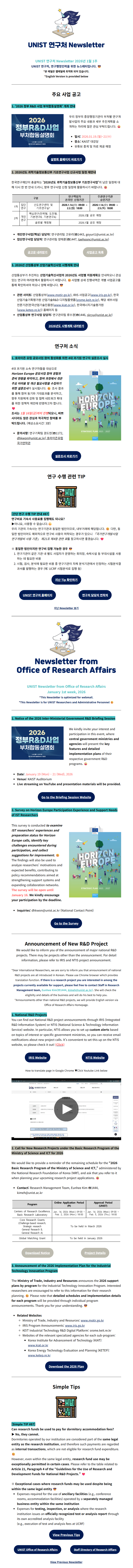 ◦양식교부 : 2026. 1. 7(수) ~ ◦양식교부 및 접수안내 : – 범부처통합연구지원시스템(www.iris.go.kr) – 산업기술 R&D 디지털플랫폼(srome.keit.re.kr) |