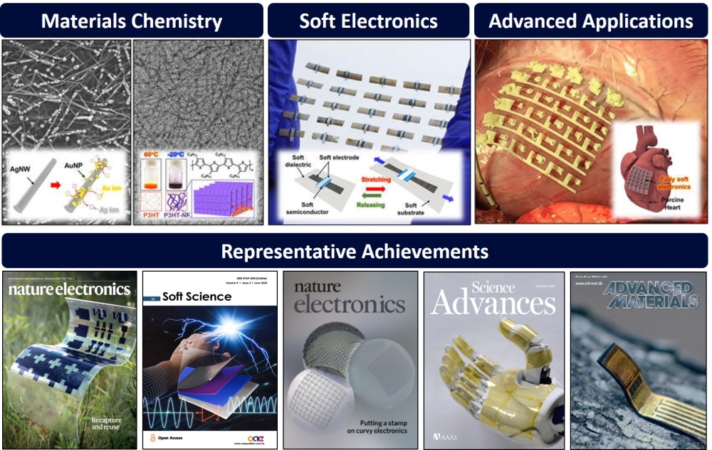 - Soft electronics, Organic semiconductor, Stretchable electronics, Synaptic device, Materials chemistry, Functional materials, Recyclable soft electronics, Wearable electronics, E-skin