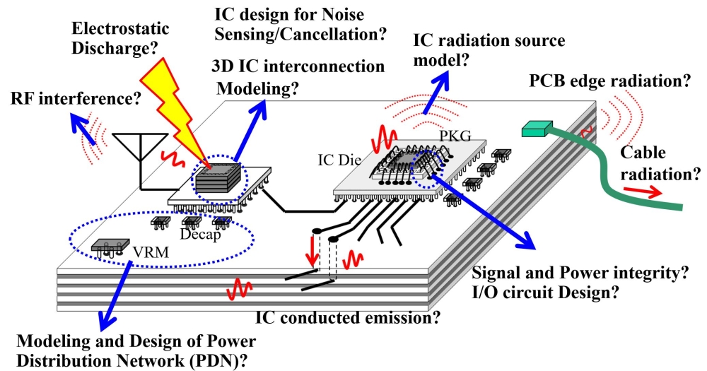 Electromagnetic Compatibility, Signal Integrity, analog IC circuit design, package design, RF interference, EMI IC design