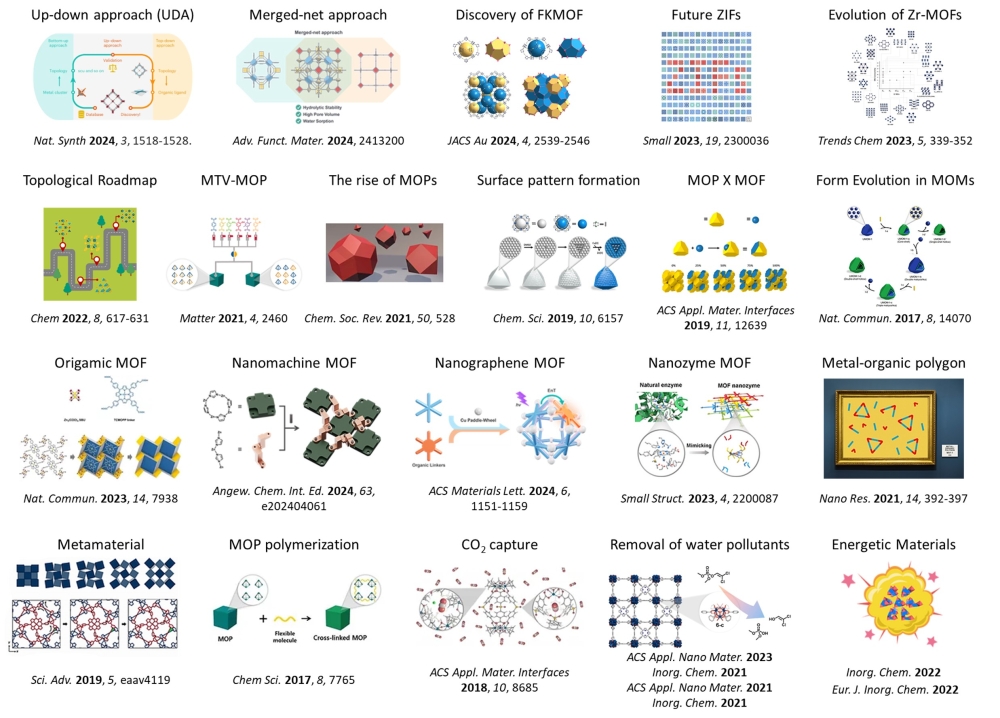 금속 유기 골격체, 금속 유기 다면체, 메타물질, 극한 자가조립, 탄소 중립, 수소저장, CO2 전환, 다공성 물질의 데이터 과학, 기계학습